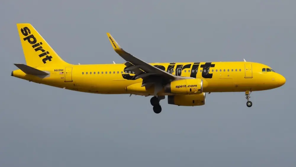 یک ایرباس A321-200 شرکت هواپیمایی اسپریت در حال نزول نهایی به سمت فرودگاه بین‌المللی نیوآرک لیبرتی.
