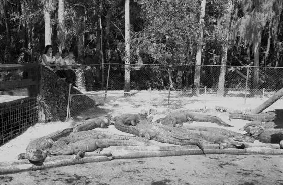 بازدیدکنندگان در پارک ایالتی هوموساسا اسپرینگز به تمساح‌ها نگاه می‌کردند، از طریق کتابخانه و آرشیو ایالت فلوریدا. تمساح‌ها «جزئی از چیزی هستند که فلوریدا را فلوریدا می‌کند»، به‌گفتهٔ نویسنده ربکا رنر.