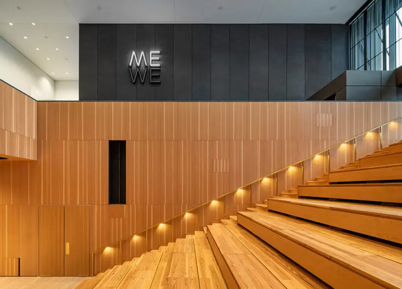 «ایوان معکوس» یک فضای پلکانی است که از خیابان به سمت لابی پایین می‌رود. تصویر © دیزاین‌بوم