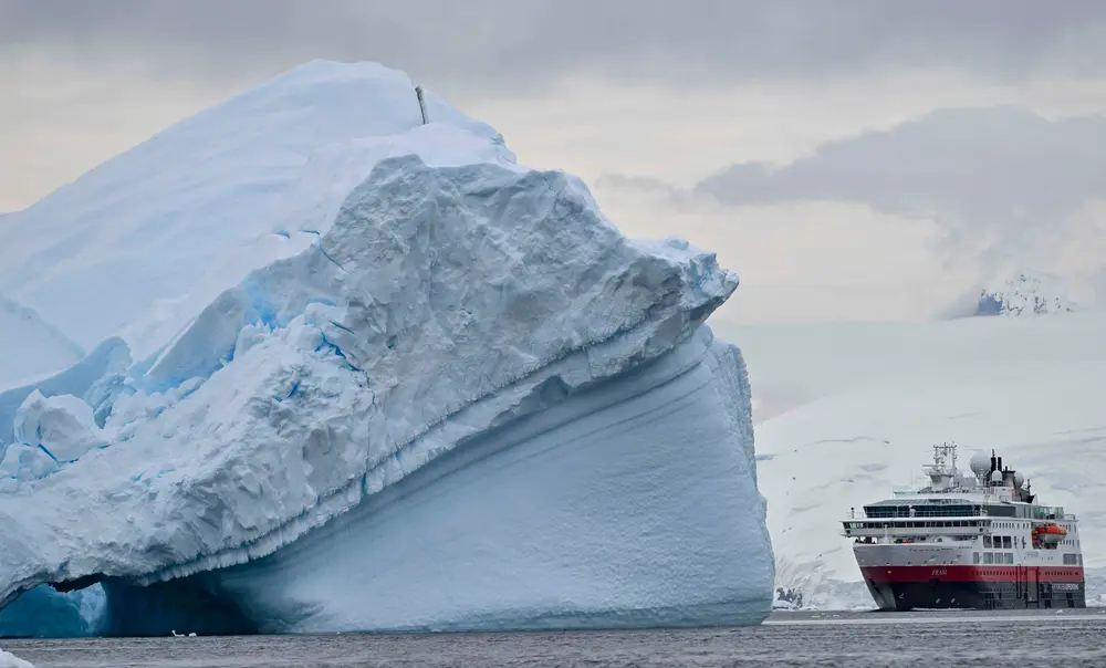 کشتی کروز MS Fram در آبراه گرلاچ که آرکپیلاگ پالمر را از شبه‌جزیرهٔ قطب جنوب جدا می‌کند، در ۲۰ ژانویهٔ ۲۰۲۴ حرکت می‌کرد.