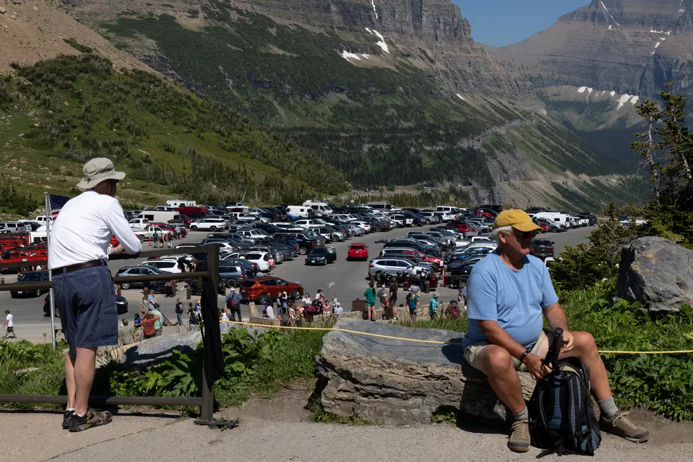 بازدیدکنندگان در تاریخ ۸ ژوئیه ۲۰۲۵ به مرکز بازدیدکنندگان لاگان‌پاس در پارک ملی گلیشر، براونینگ، مونتانا، ایالات متحده رفتند.